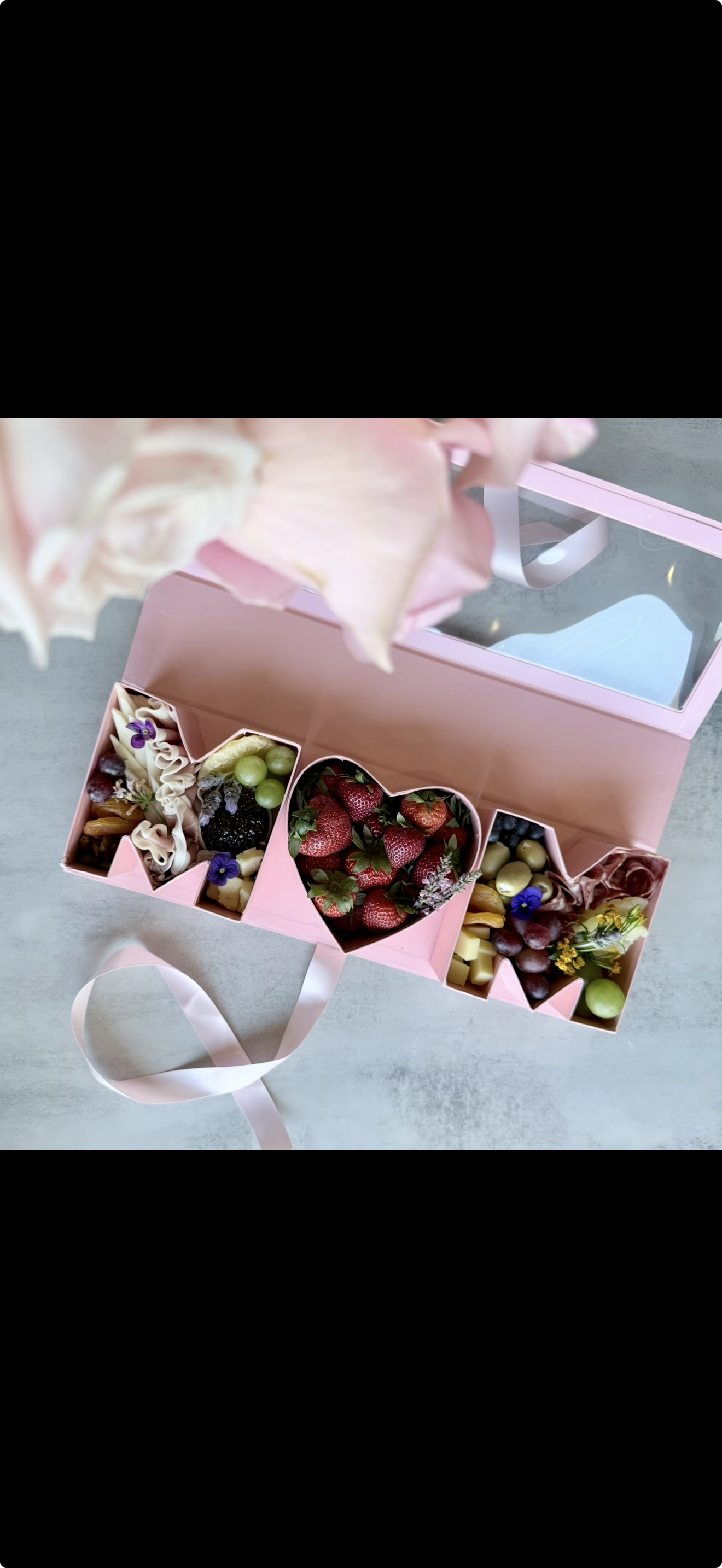 Option of the Heart being filed with strawberries, Macaroons, or chocolate covered strawberries